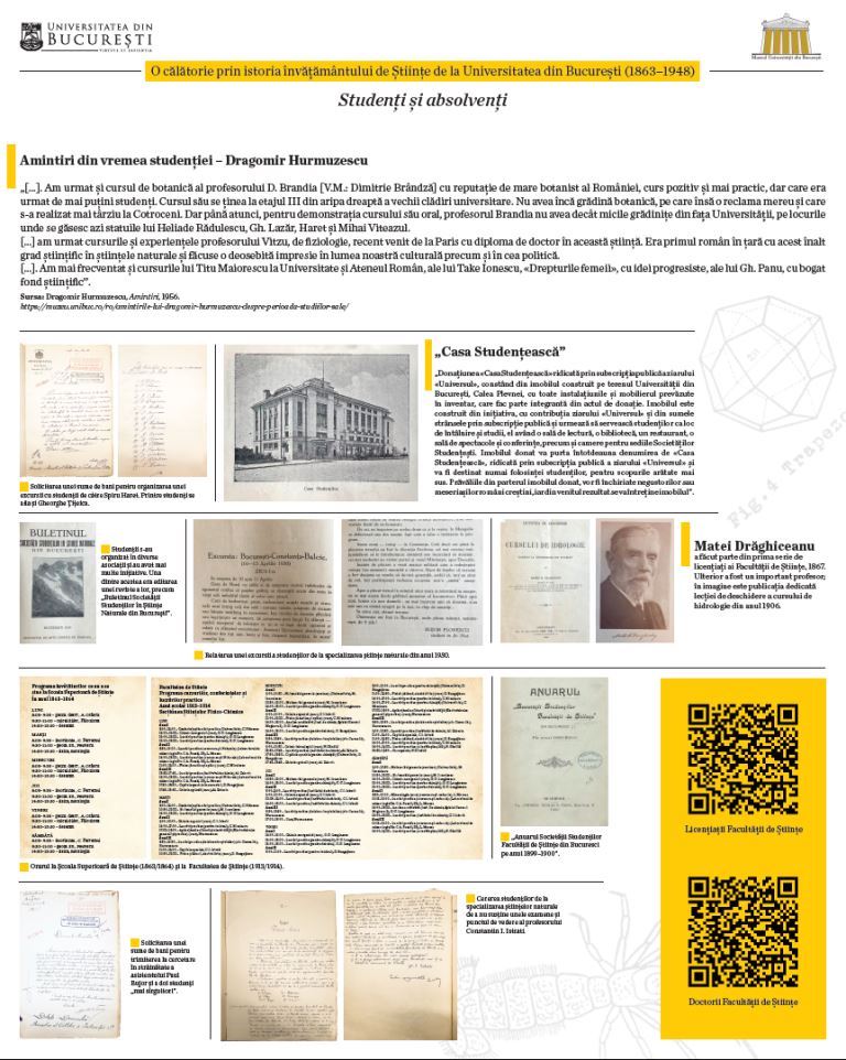The students organized themselves in various associations and had several initiatives. One of these was the editing of their magazine, such as the „Bulletin of the Society of Natural Sciences Students in Bucharest”.
