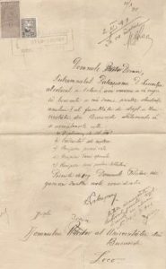 Other objects and documents can be viewed in the Digital Archive of the Museum of the University of Bucharest (DAMUB) and in the Digital Photo Library of the Museum of the University of Bucharest (DPLMUB) or in the digital exhibitions. Some digitized objects and documents in this virtual tour may be different versions from the objects and documents in the showcases or from the versions printed on the panels (lower quality versions or reduced versions or entirely from those printed on the panels). We invite you to see the permanent exhibition at the Museum of the University of Bucharest, Bd. Mihail Kogălniceanu no. 36-46 for a different experience.