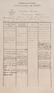 13. Page referring to the professor Istrate Micescu, taken from the Registry Book of the Academic Personnel (1928).