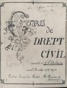 D. Civil law course taught by Nicolae Titulescu at the Faculty of Law (1915-1916).