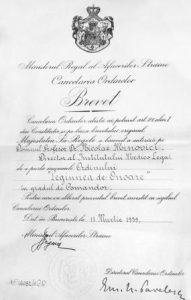 19. Brevet al ordinului Legiunea de Onoare, în grad de comandor acordat lui Nicolae Minovici (1939).