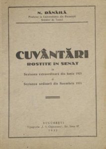 D. “Speeches held in the Senate”, booklet by Professor Nicolae Dănăilă (1932).