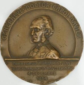 F. Medal crafted in honour of Carol Davila, the founder of Romanian academic medical schooling (1903).