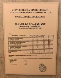 Fig. 10 – Plan de învățământ 1999-2000 Facultatea de Sociologie și Asistență Socială – Specializarea Sociologie – Anul I.
